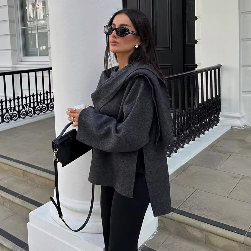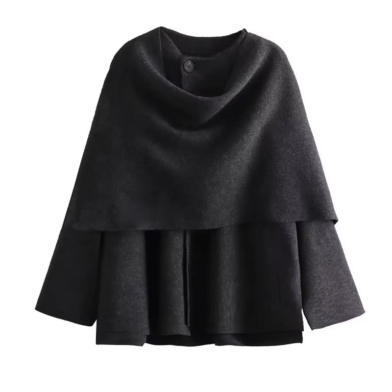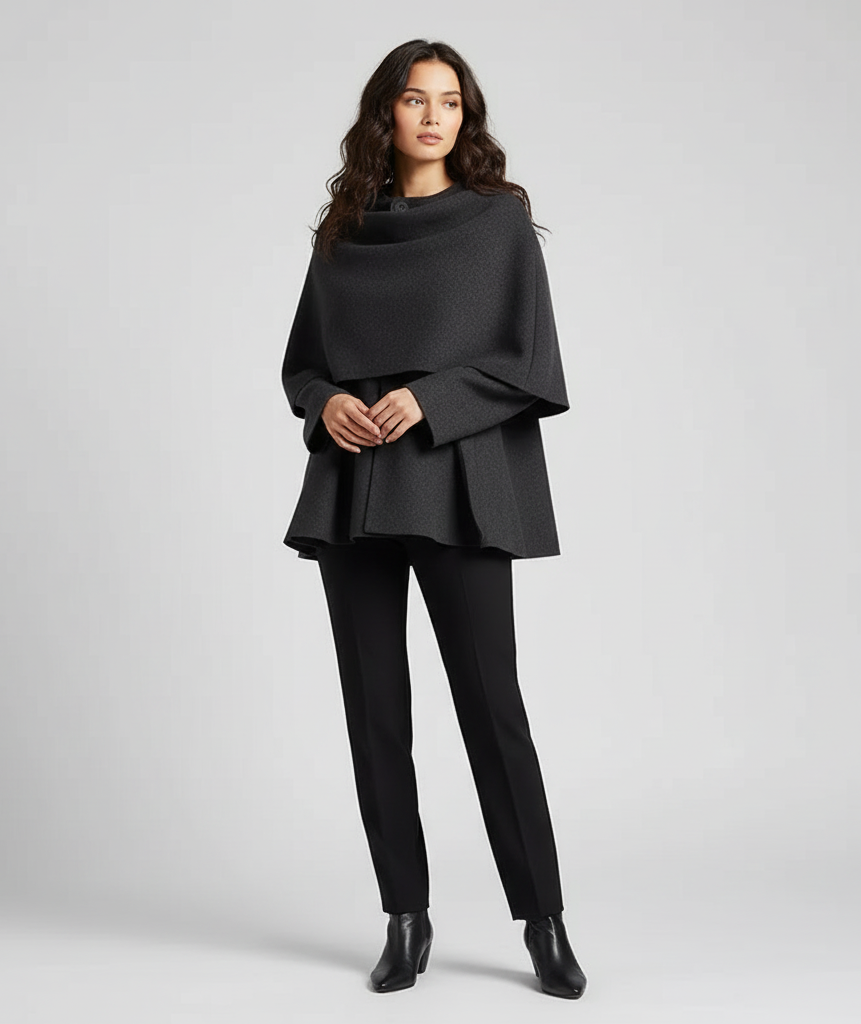 È la risposta definitiva al "non so cosa mettermi". Unisce la potenza di una mantella strutturata alla semplicità di una giacca, creando un capo che è puro carattere.